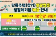 한민일보 서울포커스 임경복 기자 | 원주시는 설 연휴 동안 생활폐기물로 인한 시민 불편을 최소화하고 쾌적한 명절 분위기를 조성하기 위해 ‘설 연휴 생활폐기물 관리 대책’을 선제적으로 추진한다. 연휴 기간인 2월 14일부터 18일까지는 ‘생활폐기물 대책 상황반’과 청소 대행업체 19개 반, 53명으로 구성된 ‘기동처리반’이 가동된다. 이들은 무실동 롯데시네마, 단계동 장미공원길, 중앙시장 등 폐기물 적체가 예상되는 주요 거점을 순찰하고 관련 민원을 신속히 처리할 계획이다. 일요일인 2월 15일과 설 당일인 17일, 설 다음 날인 18일은 수거하지 않으므로, 단독주택과 상가 지역은 2월 15일과 18일 일몰 후에 배출하면 된다. 장성미 자원순환과장은 “연휴 기간 생활폐기물 수거 일정을 참고하셔서 깨끗한 원주시를 함께 만들어 주시길 바란다”라고 말했다.
