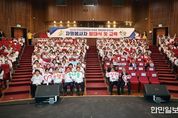 한민일보 서울포커스 김봉순 기자 | 안동시는 3월 20일 안동시민회관 낙동홀에서 '제64회 경북도민체육대회‧제28회 경상북도장애인체육대회' 자원봉사자 발대식을 개최하고, 성공적인 대회 운영을 위한 본격적인 준비에 나섰다. 이번 발대식은 도민체전의 성공적인 개최와 자원봉사자 간 결속력 강화를 위해 마련됐으며, 권기창 안동시장, 김경도 안동시의회 의장, 안윤효 안동시체육회장, 고운자 안동시자원봉사센터장을 비롯해 자원봉사자 등 300여 명이 참석했다. 행사는 ▲식전 밴드공연 ▲결의문 낭독 ▲성공기원 퍼포먼스 ▲직무교육 및 친절 서비스 교육 순으로 진행됐다. 특히 교육에서는 방문객 응대 요령과 상황별 대처법 등을 점검하며 ‘친절 안동’의 이미지를 다지는 데 중점을 뒀다. 선발된 자원봉사자들은 대회 기간 동안 경기장 안내, 개회식 지원, 질서 유지 및 환경정비 등 대회 전반에서 ‘안동의 얼굴’로 활약하게 된다. 시는 자원봉사자들이 역량을 충분히 발휘할 수 있도록 체계적인 운영 지원 체계를 마련할 계획이다. 고운자 안동시자원봉사센터장은 “이번 도민체전을 위해 함께해주신 자원봉사자 여러분께 깊이 감사드린다”며
