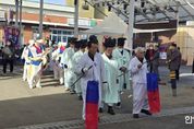 한민일보 서울포커스 박덕환 기자 | 지난 11월 29일 11시 청양시장에서는 요란한 풍장 소리와 함께 ‘원홍주등육군상무사(元洪州等六郡商務社) 공문제(公文祭)’가 열렸다. 이번 공문제는 2003년 이후 22년 만에 원홍주등육군상무사(접장 안문원)가 주최한 행사로, 충남역사문화연구원(원장 장기승)의 ‘충남 보부상 공문제 복원 및 전승기반 구축 사업’의 지원을 받아 개최했다. 임소 영접 및 공문제 입장 행차 – 공문제(제사) - 내빈 축사 – 오찬 등의 순서로 진행된 공문제에는 청양지역 주민과 시장 상인 등 100여 명이 참석했다. 풍물패가 임소 영접과 공문제 입장 행차를 이끌었으며 공문제는 유교식 제례로 진행됐다. 일반 제사와 공문제가 구별되는 가장 큰 특징은 공문제에서는 원홍주등육군상무사에서 접장을 지낸 이들의 명단을 적어 놓은 ‘선생선안(先生仙案)’이라 불리는 지방문과 더불어 육군상무사에서 소장하고 있는 청금록·선생안·인장‧인궤 등 각종 공문서와 유품을 모셔 놓고 지낸다는 점이다. 이날 공문제의 초헌관은 청양군수, 아헌관과 종헌관은 육군상무사의 부접장과 접장이 맡아서 제사를 주관했다.