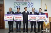 한민일보 서울포커스 김다남 기자 | 음성군은 지난 20일 군수 집무실에서 관내 5개 기업체가 1000만원 상당의 후원금품을 음성군장애인체육회(회장 조병옥)에 기탁했다고 밝혔다. 이번 기탁에는 △(주)제일참 300만원 △(주)21세기소방 200만원 △(주)창영케미칼 200만원 △성본산업단지(주) 라면 등(200만원 상당) △은찬종합건설(주) 100만원 등 총 5개의 기업이 후원금품을 전달했다. 기탁받은 후원금품은 장애인 체육시설 개선, 훈련비 지원, 장애인 체육 프로그램 지원 등 음성군 장애인 체육 발전을 위해 사용될 예정이다. 기업 대표들은 “지역 장애인 체육 활성화를 위해 기업의 사회적 책임을 다할 수 있어서 뜻깊다”며 “관내 장애인들이 체육활동을 통해 건강한 삶을 이어가고, 꿈을 키울 수 있도록 계속 관심을 가지고 지원하겠다”고 밝혔다. 조병옥 음성군장애인체육회장은 “관내 기업들의 장애인 체육 저변확대를 위한 지속적인 관심과 지원에 감사드린다”며 “기탁된 후원금은 장애인들의 체육 참여 확대와 역량 강화 등 현장 중심 지원으로 소중히 사용하고, 내년 충북장애인도민체육대회의 성공적 개최를 위해 노력