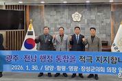 한민일보 서울포커스 임경복 기자 | 담양군의회가 인구 소멸 위기 극복과 지역 경쟁력 강화를 위해 인근 의회와 손을 맞잡고 광주-전남 행정통합 추진에 힘을 보탰다. 담양·함평·영광·장성군 의장단은 ‘광주-전남 행정통합 염원 공동 퍼포먼스’를 펼치며, 행정구역의 경계를 넘어선 초광역 협력 체계 구축에 대한 강력한 의지를 표명했다. 이번 퍼포먼스는 단순한 선언을 넘어, 광주와 전남이 하나의 생활권이자 경제권으로 재편되어야만 수도권 집중화에 대응하고 자생적인 발전 동력을 얻을 수 있다는 절박한 공감대 속에서 마련됐다. 참석한 의장단은 성명을 통해 “행정통합은 지역의 미래 경쟁력 확보와 균형발전을 위해 더 이상 미룰 수 없는 시대적 소명”이라며, “지금이야말로 광주와 전남의 백년대계를 결정할 골든타임”이라고 강조했다. 특히 장명영 의장은 “담양은 광주와 인접한 지리적 이점과 생태문화 자원을 동시에 갖춘 지역으로, 행정통합 시 시너지 효과가 가장 클 것으로 기대되는 곳”이라며, “통합 과정에서 군민의 목소리가 소외되지 않고 실질적인 복지 증진과 지역 발전으로 이어질 수 있도록 정책적 역할을 다하겠다”고 말했다