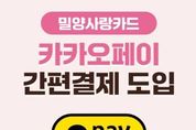 한민일보 서울포커스 김은금 기자 | 경남 밀양시는 밀양사랑카드 이용자의 결제 편의성을 높이기 위해 오는 23일부터 카카오페이 간편결제 서비스를 도입한다고 밝혔다. 이번 서비스 도입에 따라 이용자들은 카카오페이 앱 내 결제수단에 밀양사랑카드를 미리 등록하면, 별도의 실물카드 소지 없이도 바코드나 QR 스캔 방식 등으로 간편하게 결제할 수 있게 된다. 그동안 실물카드를 소지해야 했던 번거로움이 해소되어, 모바일 기반의 결제 환경이 크게 향상될 것으로 보인다. 본 서비스는 3월 23일 오전 9시부터 본격적으로 시행된다. 시는 최근 급증하는 비대면·모바일 중심의 소비 트렌드에 발맞춰 이번 서비스를 도입함으로써, 젊은 층을 비롯한 다양한 시민들의 접근성을 높이고 지역 화폐인 밀양사랑카드의 사용 활성화에도 크게 기여할 것으로 기대하고 있다. 밀양시 관계자는 “이번 카카오페이 간편결제 도입으로 시민들이 보다 편리하게 밀양사랑카드를 이용할 수 있게 됐다”며 “앞으로도 다양한 결제수단과의 연계를 통해 이용 편의성을 지속적으로 개선해 나가겠다”고 말했다.