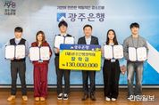 한민일보 서울포커스 박용남 기자 | 광주은행(은행장 고병일)은 지난 2일, 본점에서 광주·전남 지역 출신 장학생 대표 5명을 초청해 2025년도 (재)광주은행장학회 장학증서 수여식을 개최했다고 밝혔다. 올해 장학회는 고등학교·대학교 및 지방자치단체 등 관련 기관의 추천을 통해 학업성적이 우수하고 품행이 단정한 104명의 장학생을 선발했으며, 이들에게 총 1억3천만 원의 장학금을 전달했다. 1981년에 설립된 (재)광주은행장학회는 올해로 44년째를 맞았으며, 지금까지 총 4,804명의 지역 장학생에게 누적 40억3천만 원의 장학금을 지원하며 지역 인재 양성의 기반으로 자리매김해왔다. 광주은행은 장학사업과 더불어 지역 청소년·청년을 위한 다양한 지원 활동도 이어가고 있다. 대표적으로 ‘희망이 꽃피는 공부방(177호점)’, ‘희망이 꽃피는 꿈나무(14호)’, ‘희망이 꽃피는 봉사단(3기)’ 후원을 이어가고 있으며, 대학생 홍보대사(15기)를 운영하며 지역 인재 발굴과 직무 경험 제공 등 다방면의 청년 지원 프로그램을 펼치고 있다. 고병일 광주은행장은 “선발된 장학생 모두가 지역을 이끌어 갈 핵심 인재로