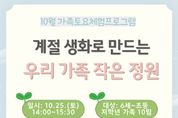 한민일보 서울포커스 유창렬 기자 | 인천광역시교육청연수도서관은 오는 10월 25일 오후 2시 평생학습1실에서 가족 이용자를 위한 ‘10월 가족 토요체험 프로그램’을 운영한다. 이번 프로그램은 ‘우리 가족 마음 정원’을 주제로 가을의 정취를 담은 그림책을 함께 읽으며 가족의 마음을 돌아보고 함께 소통하는 시간을 갖는다. 이어지는 원예 활동에서는 계절 생화를 활용해 가족의 작은 정원을 만들며 자연과 감성을 나눌 예정이다. 참여 신청은 10월 13일부터 연수도서관 누리집에서 선착순 접수하며, 자세한 내용은 연수도서관 독서문화과 로 문의하면 된다.