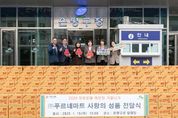 한민일보 서울포커스 임광현 기자 | 서울 은평구는 지난 15일 ㈜푸르네마트와 ‘2026 희망온돌 따뜻한 겨울나기’ 사랑의 이웃돕기 성품 전달식을 가졌다고 밝혔다. 이번 전달식을 통해 ㈜푸르네마트는 성품으로 라면 5백 상자를 기부했으며, 관내 저소득 취약계층 가구에 전달됐다. 김숙자 ㈜푸르네마트 대표는 “지역사회와 함께 성장해 온 만큼 어려운 이웃을 돕는 일에 함께하게 되어 기쁘다”며 “앞으로도 이웃과 마음을 나누는 나눔을 이어가겠다”고 말했다. 김미경 은평구청장은 “추운 겨울을 맞아 의미 있는 나눔을 실천해 주신 ㈜푸르네마트에 감사드린다”며 “기부해 주신 라면은 꼭 필요한 이웃들에게 잘 전달하겠다”고 밝혔다.