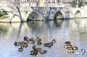 한민일보 서울포커스 박용남 기자 | 조선시대 지방건축의 백미이며 명승인 광한루원은 우리나라 4대 대표 누각 중에서도 단연 으뜸으로 평가받고 있다. 이런 광한루원에 원앙 백여마리가 둥지를 틀어 눈길을 끌고 있다. 천연기념물 원앙은 해마다 광한루원을 찾아와 겨울을 나다가 초봄이 되면 떠나는 철새이지만, 몇 해 전부터는 떠나지 않고 광한루원에 알을 낳고 새끼를 부화하더니, 이제는 백여 마리가 되어 잉어와 함께 광한루원의 명물이 되어 관광객에게 볼거리를 제공하고 있다. 원앙은 예로부터 백년해로를 상징하고 또한 현대에도 부부 금술의 상징이기도 하여, 성춘향과 이도령의 사랑의 무대인 광한루원에 잘 어울리는 새이기도 하다. 여름에는 잉어를 통해 많은 관광객들에게 화제가 됐던 광한루원에 겨울이 찾아오고 눈이 내리면서 그 풍경 속에 광한루와 원앙의 아름다움이 광한루원을 방문한 관람객들에게 특별한 순간을 선사하고 있다. 시 관계자는 “광한루원은 사시사철 이색적인 볼거리를 제공하여 광한루원을 찾는 관광객이 계절마다 특별한 추억과 볼거리를 만들 수 있도록 노력하겠다”라고 말했다.