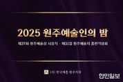 한민일보 서울포커스 임경복 기자 | 지역 문화예술 발전에 기여한 예술인들의 공로를 기리고, 원주의 예술적 성과를 공유하기 위한 ‘제37회 원주예술상 시상식 및 제31집 원주예술지 출판기념회’가 오는 16일 오후 5시, 빌라드아모르에서 개최된다. 올해로 37회를 맞은 원주예술상은 지난 한 해 동안 지역 문화예술 분야에서 두드러진 활동을 펼친 예술인에게 수여되는 상으로, 예술인의 창작 의욕을 고취하고 지역 문화예술의 위상을 높이는 데 중요한 역할을 해왔다. 올해 시상식에서는 ▲대상 ▲공로상 ▲신진예술인상 ▲자랑스러운 원주예술인상 등 총 6명의 수상자가 선정됐다. 또한 행사와 함께 진행되는 제31집 ‘원주예술지’ 출판기념회에서는 올 한 해 지역 예술계의 창작물, 활동 기록 등 다양한 콘텐츠가 담긴 예술지를 시민들에게 공개한다. 원주예술지는 지역 예술의 흐름과 변화를 기록해 온 대표적인 연간 예술지로, 원주의 문화자산을 보존하고 예술인들의 목소리를 확장하는 데 의미 있는 역할을 해오고 있다. 박혜순 원주시 문화예술과장은 “한 해 동안 지역 곳곳에서 활동하며 원주 문화예술의 깊이를 더해준 예술인들께 감사의 마음을 전한다