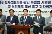 한민일보 서울포커스 박용남 기자 | 심덕섭 고창군수가 18일 오전 전북특별자치도 도의회 브리핑룸에서 열린 전국원전인근지역동맹 행정협의회 공동 기자회견에 참여해 “시행을 앞둔 고준위핵폐기물 임시저장시설 설치를 골자로 한 ‘특별법 시행령’에 깊은 유감을 표하며 원전과 관련된 불합리한 법령 및 제도를 개선할 것”을 촉구했다. 기자회견에는 심덕섭 고창군수와 권익현 부안군수(원전동맹 협의회장)가 함께 참여해 지역 주민들의 목소리를 대변했다. 앞서 정부는 지난 16일 국무회의에서 ‘고준위 방사성폐기물 관리시설’ 부지 선정 등을 골자로 한 ‘고준위 방사성폐기물 관리에 관한 특별법’ 시행령과 ‘고준위 방사성폐기물 관리위원회' 직제 시행령’을 의결했다. 이에 전국원전지역동맹은 “폐기물 임시저장시설을 짓는데 주민동의 등 실질적인 주민수용성 절차가 반영되지 않았으며, 임시저장시설의 영구화를 초래할 위험이 크다”고 일제히 반발했다. 심덕섭 고창군수는 “해당 법령에서 ‘주변지역’을 저장시설 반경 5㎞로 한정한 것은 핵발전소와 동일한 위험에 노출되어 있는 인근 지역주민들의 안전을 심각하게 침해하는 불합리한 기준이다”고 성토
