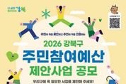 한민일보 서울포커스 김봉순 기자 | 서울 강북구가 구민의 다양한 의견을 구정에 반영하기 위해 오는 4월 30일까지 ‘2026년 강북구 주민참여예산 제안사업’을 공모한다. 주민참여예산제는 예산 편성 과정에서 주민의 참여를 보장하고 예산 운영의 투명성과 공정성을 높이기 위해 시행하는 제도다. 공모 분야는 강북구 내 안전, 교육, 복지, 문화 등 생활밀착형 주민 편익 사업이다. 이번 공모에는 강북구민은 물론 강북구에서 근무하는 직장인과 강북구 소재 학교에 재학중인 학생도 참여할 수 있다. 올해 주민참여예산 규모는 총 7억원으로, 일반사업은 최대 2억원, 행사성(프로그램) 사업은 최대 3천만원까지 신청 가능하다. 구는 지난해 주민참여예산 절차를 통해 선정된 사업을 바탕으로 올해 총 3억원을 투입해 ▲밤길 걱정 없는 골목 만들기 ▲올바른 재활용(정리와 배출) ▲내 집 앞 안심존 조성 ▲노후 표면 지상기기 미관 개선 ▲북한산 둘레길 흙먼지 털이기 설치 ▲걷기 지도자 양성 교육 및 활성화 ▲휠체어 살균 소독기 설치 등 7개 사업을 추진하고 있다. 공모 참여를 희망하는 주민은 '제안사업 신청서'를 작성해 강북구청