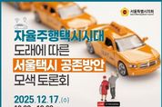한민일보 서울포커스 국용호 기자 | 서울특별시의회 교통위원회(위원장 이병윤, 국민의힘, 동대문1)는 2025년 12월 17일 10시, 서울시의회 의원회관 제2대회의실에서 “자율주행택시시대 도래에 따른 서울택시 공존방안 모색 토론회”라는 주제로 토론회를 개최했다. 서울시의회가 주최하고 교통위원회가 주관한 이번 토론회는 이병윤 교통위원장 개회사로 시작됐으며 김동완 서울특별시택시운송사업조합 이사장의 축사와 함께 문성호 서울시 의원이 사회를 맡았다. 자율주행택시에 대한 주제 발제는 한국개발연구원(KDI) 김동영 전문연구원이 진행했으며, 이어지는 토론에서는 이경숙 교통위원회 부위원장이 좌장을 맡아 논의를 이끌었다. 토론자로는 김거중 한국교통연구원 부연구위원, 장정아 아주대학교 연구교수, 이우영 HC택시 대표이사, 박준환 국회입법조사처 팀장, 정준호 서울시 의원, 손형권 택시정책과장이 참여하여 토론이 진행됐다. 이 날 토론회에서는 자율주행 시대의 도래에 발맞춰 택시 산업의 지속 가능한 발전을 위한 준비가 필요하다는 데에 공감대를 형성했다. 아울러 기존 택시 시장과 첨단기술이 상생할 수 있는 자율주행 서비스 도입 방안을 모