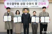 한민일보 서울포커스 백진욱 기자 | 인천 동구는 지난 17일‘2025년 민원처리 마일리지 운영 우수공무원’을 선정·포상하고 관련 간담회를 개최했다고 밝혔다. 이번 포상은 올해 신속한 민원 처리에 기여한 공직자를 격려하기 위해 마련됐다. 여성보육과 이진형 주무관이 민원처리 최우수 공무원에 선정됐으며, 이어 우수 공무원에는 아동청소년과 김은지 주무관, 도시경관과에 함인숙 주무관이 선정됐다. 교통과 신지혜 주무관, 건축과 고다영 주무관, 도시경관과 서기원 주무관은 장려상을 받았다. 이날 김찬진 동구청장은 민원처리 우수공무원에게 상장을 수여하고 담당자들로부터 다양한 민원 사례 및 고충 사항을 청취한 뒤 민원 업무 개선 방안 및 민원서비스 향상 등에 대해 의견을 나눴다. 김찬진 동구청장은“다양한 민원이 지속적으로 증가하고 있는 상황에서, 이를 해결하기 위해 묵묵히 최선을 다해주는 직원 여러분들의 노고에 깊이 감사드린다”며 “직원들의 사기진작과 구민 감동 행정서비스 제공을 위해 더욱 노력하겠다”고 말했다.