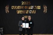 한민일보 서울포커스 김봉순 기자 | 대구문화예술진흥원이 1월 15일 예술가의집(서울)에서 한국문화예술위원회와와 한국지역문화재단총연합회에서 공동 주최한 ‘2025 대한민국 예술과 기업 동반성장 대상’ 시상식에서 한국문화예술위원회 위원장상(우수재단상)을 수상했다. ‘예술과 기업 동반성장’ 사업은 한국문화예술위원회와 한국지역문화재단총연합회가 예술후원의 일상화와 지속가능한 예술 환경 조성을 위해 추진한 사업이다. 진흥원은 2025년 해당 사업을 통해 총 12개의 지역 기업으로부터 1억 2,500만 원을 기부받고, 예술위 지원금 등을 합해 총 3억 7,100만 원을 지역 예술단체에 후원하는 실적을 올렸다. 이와 함께 2025년 11월 26일 ‘메세나 콘서트’를 개최하는 등 지역에 문화예술 후원 가치를 확산하는 데 힘썼다. 이러한 공로를 인정받아 우수재단으로 선정된 진흥원은 시상식에서 한국문화예술위원회 위원장상을 수상했다. 이와 함께 지역의 우수기업 부분에 동일산업㈜, 우수예술단체 부분에 대구음악협회가 동반 수상하는 성과를 거뒀다. 특히 지역 중견기업 동일산업㈜은 1988년 (재)동일