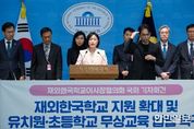 한민일보 서울포커스 임경복 기자 | 국회 교육위원회 소속 백승아 의원 ( 더불어민주당 ) 은 13 일 국회에서 재외한국학교 유치원 및 초등학교 과정에 대한 무상교육 지원 필요성을 호소하는 기자회견을 개최하고 , 이에 대한 법적 근거를 마련하는 ' 재외국민의 교육지원 등에 관한 법률 일부개정법률안 ' 을 대표발의했다 . 재외한국학교는 재외국민에게 국내의 초 · 중등 교육과정에 따른 학교교육을 실시하기 위하여 외국에 설립된 교육부 소관 교육기관이다 . 현재 세계 16 개국 34 개 재외한국학교가 운영되고 있으며 , 재학생은 13,000 여 명에 이른다 . 그러나 재외한국학교의 교육 여건은 국내에 비해 매우 열악하다 . 현행법은 재외한국학교 학생에 대한 수업료 및 입학금 지원을 저소득층 학생에 한정하고 있어 , 다수의 재외국민 자녀들이 높은 학비 부담 속에서 교육의 사각지대에 놓여 있다는 지적이 이어져 왔다 . 특히 국내에서는 이미 고등학교까지 무상교육이 시행되고 있음에도 해외에 거주한다는 이유만으로 교육 기회와 지원에 차이가 발생한다는 문제가 제기돼 왔다 . 이번 백승아 의원이 대표발의한 재외국민 교육지원법 개정안