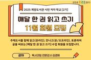 한민일보 서울포커스 유창렬 기자 | 인천광역시교육청계양도서관은 인천시민을 대상으로 11월 7일부터 21일까지 시민저자학교 2기 프로그램 ‘매달 한 권 읽고 쓰기’를 운영한다. ‘매달 한 권 읽고 쓰기’는 한 권의 책을 깊이 읽고 그 안에서 발견한 생각과 감정을 글로 표현하는 시민 창작형 독서 프로그램으로 11월의 주제 도서는 김금희 작가의 ‘대온실 수리 보고서’이다. 참가자들은 작품을 중심으로 서로의 다름을 이해하고 글쓰기를 통해 자신과 세상을 성찰하는 시간을 갖는다. 참가 신청은 10월 27일부터 오전 9시부터 계양도서관 누리집에서 가능하며, 자세한 내용은 누리집 공지사항을 참고하거나 종합자료실로 문의하면 된다.