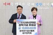 한민일보 서울포커스 임경복 기자 | 대구시교육청은 2월 23일, 한국전기공사협회 대구장학회에서 대구인재육성장학재단에 장학금 1천만 원을 기탁했다고 밝혔다. 한국전기공사협회 대구광역시회(회장 이병철)는 2011년 11월 대구장학회를 설립하여 경제적 사정이 어려운 전기관련학과 고등학생 및 대학생을 지원해오고 있으며, 지역 인재육성에 더욱 도움이 되고자 2025년에 이어 2년째 대구인재육성장학재단에 기탁하게 됐다. 이병철 회장은 “어려운 환경에서도 학생들이 재능을 키워나갈 수 있도록 지원하는데 보탬이 되길 바란다.”는 뜻을 전했고, 류석종 이사장은 “업계 발전을 위한 인재 육성 뿐 아니라, 더 나아가서 다양한 분야의 인재가 배출될 수 있도록 적극 지원하겠다.”고 했다. 강은희 교육감은 “기탁해주셔서 감사드리며, 기탁금은 어려운 학생들이 학업에 집중할 수 있도록 지원하는데 최선을 다하겠다.”며 고마움을 표시했다.