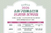 한민일보 서울포커스 박정민 기자 | 서울 송파구는 지역 문화예술 저변 확대와 구민의 문화 향유 기회 제공을 위해 오는 2월 19일까지 구립문화예술단체 신규단원을 공개 모집한다고 밝혔다. 현재 송파구는 서울시 자치구 중 가장 많은 총 8개의 구립문화예술단체를 운영하고 있다. ▲교향악단 ▲합창단 ▲실버합창단 ▲실버악단 ▲민속예술단 ▲청소년교향악단 ▲소년소녀합창단 ▲극단으로 구성되어 있으며, 어린이부터 어르신까지 전 세대가 어우러져 활동 중이다. 올해는 실버악단을 제외한 7개 단체에서 신규단원을 선발한다. 모집 기간은 단체별로 상이하며, 최대 2월 19일까지다. 입단을 희망하는 구민은 송파구청 홈페이지 고시·공고란에서 단체별 자격 조건과 모집 부문을 확인한 후, 응시 서류를 작성해 이메일로 제출하거나 송파구청 문화예술과로 방문 접수하면 된다. 선발 절차는 1차 서류 심사와 2차 실기 및 면접(오디션)을 거쳐 최종 합격자를 결정한다. 단원으로 위촉되면 '한성백제문화제', '석촌호수 벚꽃축제' 등 송파구의 대표 축제 무대에 서게 되며, 롯데콘서트홀과 송파문화예술회관 등에서의 정기 공연 기회도 주