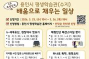 한민일보 서울포커스 김성윤 기자 | 용인특례시는 25일부터 26일까지 수지구에 있는 용인시 평생학습관에서 특별강좌 수강생을 모집한다고 17일 밝혔다. 이번 특별강좌는 4주 과정으로, 시민의 수요를 반영해 실생활에 도움이 되는 다양한 강좌로 구성됐다. 총 8개 강좌를 운영하며 112명의 수강생을 모집한다. 주요 프로그램은 ▲인문교양 분야(K-세계유산, 현장에서 멋보기) ▲뷰티 분야(체형 진단 패션스타일 찾기) ▲정보화 분야(디지털 사진 입문: 스마트폰으로 배우기) ▲조리 분야(우리 집 김치 만들기) ▲문화예술 분야(쉽고 편한 보컬 발성법 야간) 등이다. 교육은 3월 30일부터 4월 24일까지 진행되며 만 19세 이상 용인시민이라면 누구나 신청할 수 있다. 용인에 주소를 둔 재외국민, 결혼이민자, 용인 소재 기업에 재직 중인 직장인도 참여 가능하다. 접수는 용인시 평생학습관 누리집을 통해 선착순으로 진행된다. 수강료는 강좌별 수업 시간에 따라 1만 원에서 1만 5000원이며, 재료비는 별도로 개인이 부담한다. 시 관계자는 “시민이 배움의 가치를 느낄 수 있도록 실생