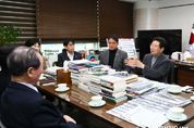 한민일보 서울포커스 김성윤 기자 | 이상일 용인특례시장은 13일 시청 접견실에서 ‘2026년 특수협 찾아가는 시무식’을 위해 시를 방문한 특별대책지역 수질보전정책협의회 임원진과 간담회를 가졌다. 간담회에는 이상일 시장을 비롯해 시 관계자, 강천심 특수협 운영본부장 등 특수협 임원진 6명이 참석했다. 특수협은 ‘한강수계 상수원수질개선 및 주민지원 등에 관한 법률’에 따라 설치된 민관협력 기구로, 팔당호 수질 보전과 특별대책지역 주민의 삶의 질 향상을 위한 정책 발굴과 협의를 목적으로 운영되고 있다. 현재 기후에너지환경부 차관·물환경정책관, 경기도 경제부지사, 한강유역환경청장, 용인시·광주시·이천시·남양주시·양평군·가평군·여주시 등 7개 시군 단체장과 의회의장, 시군 주민대표 등 총 25명으로 구성돼 있다. 간담회에서는 특수협의 2025년도 활동 성과를 공유하고, 2026년도 주요 업무계획과 협력 방안을 논의했다. 특수협은 지난해 팔당상수원 규제 개선을 촉구하는 주민 서명운동을 추진해 총 4만4670명의 서명을 받았으며, 이 가운데 용인시에서도 3573명이 참여했다. 서명부는 사반기 내 중