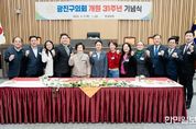 한민일보 서울포커스 국용호 기자 | 광진구의회가 5일 광진구의회 본회의장에서 개원 31주년 기념식을 개최했다. 이날 기념식에는 전은혜 의장을 비롯한 현직 구의원들과 김경호 광진구청장, 역대 의장단 및 의정회 회원, 의회사무국 직원 등 70여 명이 참석했다. 행사는 이동길 운영위원장의 사회로 진행됐으며, 전은혜 의장의 기념사를 시작으로 김경호 구청장, 허운회·박삼례 전 의장, 이재선·최복수 전 의정회장, 최금손 의정회장의 축사가 차례로 이어졌다. 이어 케이크 절단식과 고양석 부의장의 건배 제의를 통해 화합의 시간을 가졌다. 김경호 구청장은 광진구의회 개원 31주년을 축하하며 “광진구의회와 구민의 행복 및 지역발전이라는 공동의 목표를 위해 긴밀히 소통하고 협력해나가겠다”라고 말했다. 전은혜 의장은 기념사를 통해 “구민의 목소리를 대변하며 걸어온 지난 31년동안 함께해주신 선배님들과 동료 의원님들, 조력해준 집행부에 감사한다”며, “시작한 일을 끝까지 잘 매듭짓는 유시유종(有始有終)의 자세로 초심을 지키며 남은 임기 동안 책임을 다하는 의정활동을 이어가겠다”고 말했다. 광진구의회는 1995년 3월 1일