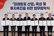 한민일보 서울포커스 박덕환 기자 | 대한민국 미래항공산업 핵심 거점으로 비상 채비를 서두르고 있는 충남 태안 천수만에 항공·방산·우주 분야 글로벌 기업들이 응원군으로 떴다. 김태흠 지사는 10일 태안문화예술회관에서 성일종 국회의원, 이정석 국방과학연구소 부소장, 대한항공·LIG넥스원·한국항공우주산업(KAI)·한화에어로스페이스 등 4개 참여 기업 관계자가 참석한 가운데 미래항공 산업 육성 및 투자 촉진을 위한 업무협약을 체결했다 이번 협약은 태안 천수만 B지구 일원에 건립 추진 중인 국방미래항공연구센터 연계 기업 지원 인프라를 토대로, 미래항공산업 전략적 거점을 육성하고, 지역 신성장동력 창출을 위해 상호 협력하기 위해 맺었다. 협약 기관 및 기업은 우선 △국방미래항공연구센터 등 연구 및 기업 지원 인프라 조성 △중앙·지방정부 및 기업의 원활한 사업 추진을 위한 각종 협력 △공공·민간 투자 예산 확보 등에 힘을 모으기로 했다. 이와 함께 도는 국방미래항공연구센터 연계 특화산업단지 조성, 교통 등 정주여건 개선 및 안정적인 용수·전력 공급 등 기업 유치 기반 구축, 기업 투자 활동에 대한 행·재정적 지원에 나선다.