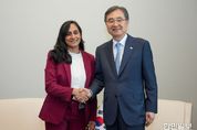한민일보 서울포커스 임경복 기자 | 조현 외교부 장관은 9월 25일 오후 유엔본부에서 아니타 아난드(Anita Anand) 캐나다 외교장관과 상견례를 겸한 회담을 갖고, 고위급 교류를 포함한 양국 관계 전반, 미래 실질 협력 방안, 지역 및 국제정세 등에 대해 의견을 교환했다. 조 장관은 올해 한국과 캐나다 신정부 출범 이후 6월 G7 정상회의 계기에 양국 정상회담 개최에 이어 이번 외교장관회담을 통해 양국간 고위급 교류가 지속되고 있어 기쁘다고 하고, 한-캐나다 '포괄적 전략 동반자(Comprehensive Strategic Partnership)' 관계를 보다 더 발전시켜 나가자고 했다. 아난드 장관은 캐나다가 인태지역에 대한 관여를 보다 확대해 나가는 데 있어 한국은 신뢰할 수 있는 파트너라고 하면서, 캐나다가 안보·경제 파트너십 및 에너지 공급망을 다변화하고, 안보·방산 역량을 발전시켜 나가는 과정에서 한국과 긴밀히 협력해 나가기를 바란다고 했다. 조 장관은 한반도 평화·안정을 위한 우리의 대북 정책을 설명하고, 우리의 노력에 대한 국제사회의 이해 제고 및 지지 확산을 위해 G7 의장국인 캐나다의 역할을