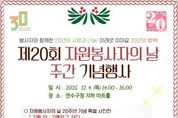 한민일보 서울포커스 백진욱 기자 | 인천광역시 연수구자원봉사센터에서는 오는 12월4일 자원봉사자의날 20주년 기념식을 연수구청 지하 아트홀에서 개최한다고 밝혔다. 이날 ‘20년의 나눔을 넘어 미래로 이어갈 20년의 행복’을 주제로 열릴 기념식 행사는 지난 20년간 지역사회 곳곳에서 묵묵히 헌신해온 자원봉사자들의 발자취를 돌아보고 앞으로의 20년을 향한 새로운 비전을 공유하기 위해 마련된다. 1부에서는 ‘봉사, 평등, 헌신’을 주제로 한 20주년 특별사진전이 열린다. 지역의 다양한 봉사현장, 평등한 참여를 위한 노력, 헌신의 순간들을 기록한 사진 50여점이 전시되며, 자원봉사자들의 생생한 이야기를 시작으로 담아낸다는 점에서 의미가 깊다. 2부 기념식에서는 이재호 연수구청장님의 인사말을 비롯한 내빈 및 자원봉사자 500여명이 참석한 가운데 진행되며, 오카리나 봉사단 ,뮤직프랜즈 봉사단, 햇빛나무어린이집 원아들의 식전공연으로 따뜻하고 활기찬 분위기로 행사의 문을 연다. 이날 기념식에서는 ▲ 자원봉사자 유공자표창 ▲ 인증서, 인증패 수여 ▲ 자원봉사의 역사를 담은 홍보영상 ▲ 하윤재 꽃꽂이 봉사단 전시회 등이 진행되