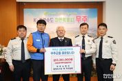 한민일보 서울포커스 박용남 기자 | 무주소방서 임직원 일동은 지난 9일 무주군에 고향사랑기부금 1,221만 원을 전달하며 훈훈함을 전했다. 임정욱 서장은 “화재 등 각종 위험으로부터 지역과 주민을 지킨다는 사명감만으로도 직원들에게는 이미 무주가 제2의 고향”이라며 “무주군 발전과 군민 행복을 지키는데 소중히 쓰이길 바란다”라고 전했다. 무주소방서는 지난 2023년 7월 개서 이후 각종 재난·재해 신고에 신속하게 대응하며 주민의 생명과 재산 보호에 힘써왔다. 특히 지난 2024년부터 3년 연속으로 ‘고향사랑 무주사랑’ 실천에 동참(298명)하며 지금까지 3,121만 원의 고향사랑기부금을 기부했다.