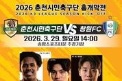 한민일보 서울포커스 최성훈 기자 | 춘천시민축구단이 2026 시즌 K3리그 홈 개막전에서 ‘첫승’ 사냥에 나선다. 춘천시민축구단은 오는 29일 오후 2시 송암스포츠타운 주경기장에서 창원FC를 상대로 홈 개막전을 치른다. 이번 경기는 시즌 초반 흐름을 좌우할 중요한 경기로 춘천시민축구단은 홈 개막전에서 승리를 거두며 시즌의 첫 단추를 제대로 끼우겠다는 각오다. 시는 이번 개막전을 단순한 경기 개최를 넘어 시민이 함께 즐기는 축제형 스포츠 행사로 운영한다. 시는 관람객 2,000명을 목표로 온·오프라인 홍보를 단계적으로 추진하고 있다. 입장권은 일반 1만 원이며, 춘천시민은 50% 할인된 5,000원에 관람할 수 있다. 8세 미만까지는 무료로 입장할 수 있다. 경기 당일에는 다양한 시민 참여 프로그램이 마련된다. 경기 전에는 선수단 팬사인회와 설문 이벤트가 진행되며 경기장 일대에는 푸드트럭이 운영돼 관람객 편의를 높인다. 또한 시즌권과 유니폼 현장 판매가 이뤄지고, 경기 종료 후에는 스타일러와 아이패드 등 다양한 경품 추첨 이벤트도 진행될 예정이다. 시는 관람객 접근성과 편의도 함께 강화한다. 송암스포