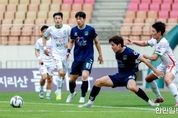 한민일보 서울포커스 최성훈 기자 | 진주시민축구단이 안방에서 승리를 거두며 2026 K4리그 단독 선두로 올라섰다. 진주시민축구단은 지난 19일 진주종합경기장에서 열린 금산인삼FC와의 7라운드 홈경기에서 경기 종료 직전 터진 윤도원의 결승골에 힘입어 1-0 승리를 거두었다. 이로써 진주는 6연승을 달성하며 리그 선두로 나섰다. 특히 이날 경기는 진주시장애인축구협회 선수단이 진주시민축구단 선수들과 손을 맞잡고 에스코트 파트너로 나서며 의미를 더했다. 진주시민축구단은 전반 초반부터 강한 전방 압박으로 경기를 운영했다. 전반 중반 주장 임민혁이 부상으로 교체되는 변수가 있었지만, 진주시는 크게 흔들리지 않고 경기 흐름을 유지했다. 높은 점유율을 바탕으로 측면을 활용한 공격을 전개했으나, 금산인삼FC의 수비에 막혀 전반은 득점 없이 종료됐다. 후반 들어 진주시민축구단은 공격적으로 나섰다. 이동규의 슈팅이 상대 골키퍼 선방에 막히는 등 득점 기회를 살리지 못했고, 경기는 무승부로 이어질 가능성이 높아지는 흐름 속에서 추가시간으로 접어들었다. 결정