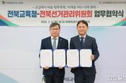 한민일보 서울포커스 임경복 기자 | 전북특별자치도교육청이 학생 선거교육 및 민주시민교육 활성화를 위해 전북특별자치도선거관리위원회와 협력 체계를 구축한다. 유정기 교육감 권한대행과 경범훈 전북선관위 사무처장은 9일 도교육청 5층 회의실에서 양 기관 관계자 10여 명이 참여한 가운데 ‘주권자시민교육 활성화를 위한 업무협약’을 체결했다. 이번 협약은 ‘교실에서 배운 민주주의, 미래를 여는 나의 권리’를 비전으로 선거의 의미와 원칙을 이해하고, 자율과 책임의 균형을 갖춘 시민으로의 성장을 돕기 위해 마련됐다. 협약에 따라 양 기관은 △미래·새내기 유권자 대상 선거교육 및 민주시민 교육 활성화 △교원 대상 참정권교육 관련 연수 프로그램 공동기획·운영 △모의선거와 토론수업, 체험형 교육 중심 참여형 시민교육 프로그램 운영 등 3개 분야 사업을 공동 추진한다. 전북교육청은 학교 현장과의 연계, 교육 대상자 참여 지원 및 교육 여건 조성을 담당하고, 전북선관위는 도내 학생과 교원을 대상으로 선거 및 참정권교육 관련 전문 인력과 교육자료, 프로그램 운영을 맡는다. 특히 단순히 선거와 정치참여를 배우는